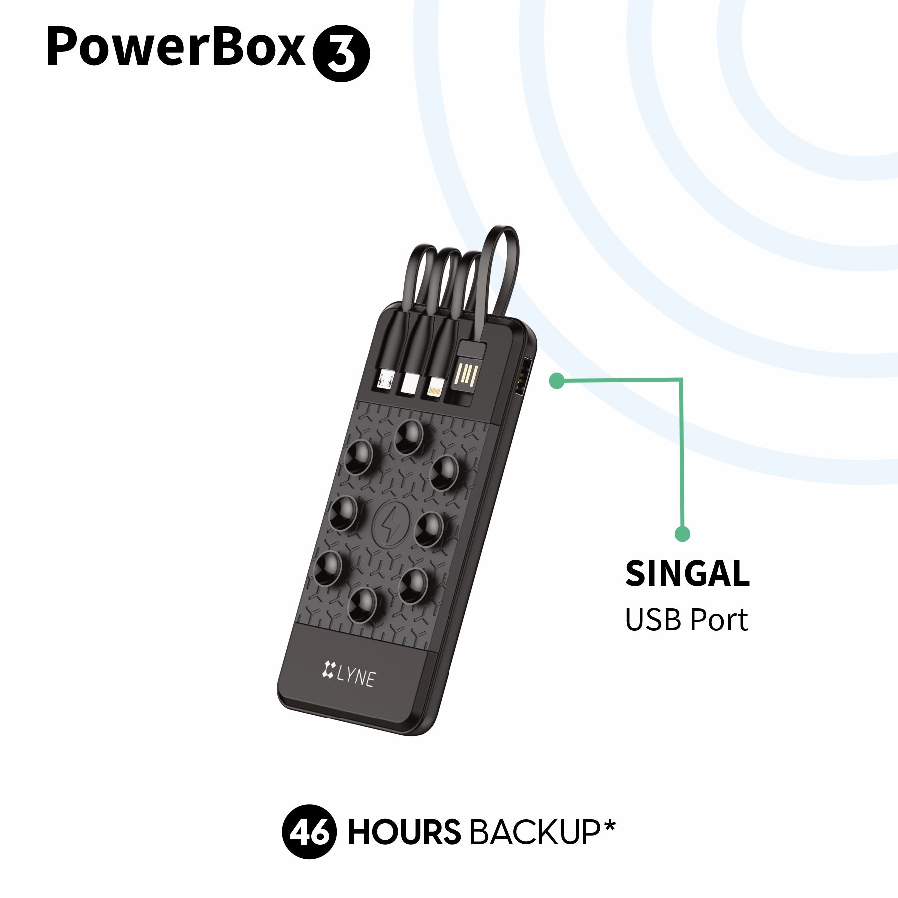 LYNE Powerbox 3 10K mAh Battery Capacity, 46 Hours of Extra Backup, 4 in 1 Powerbank, Single USB Port